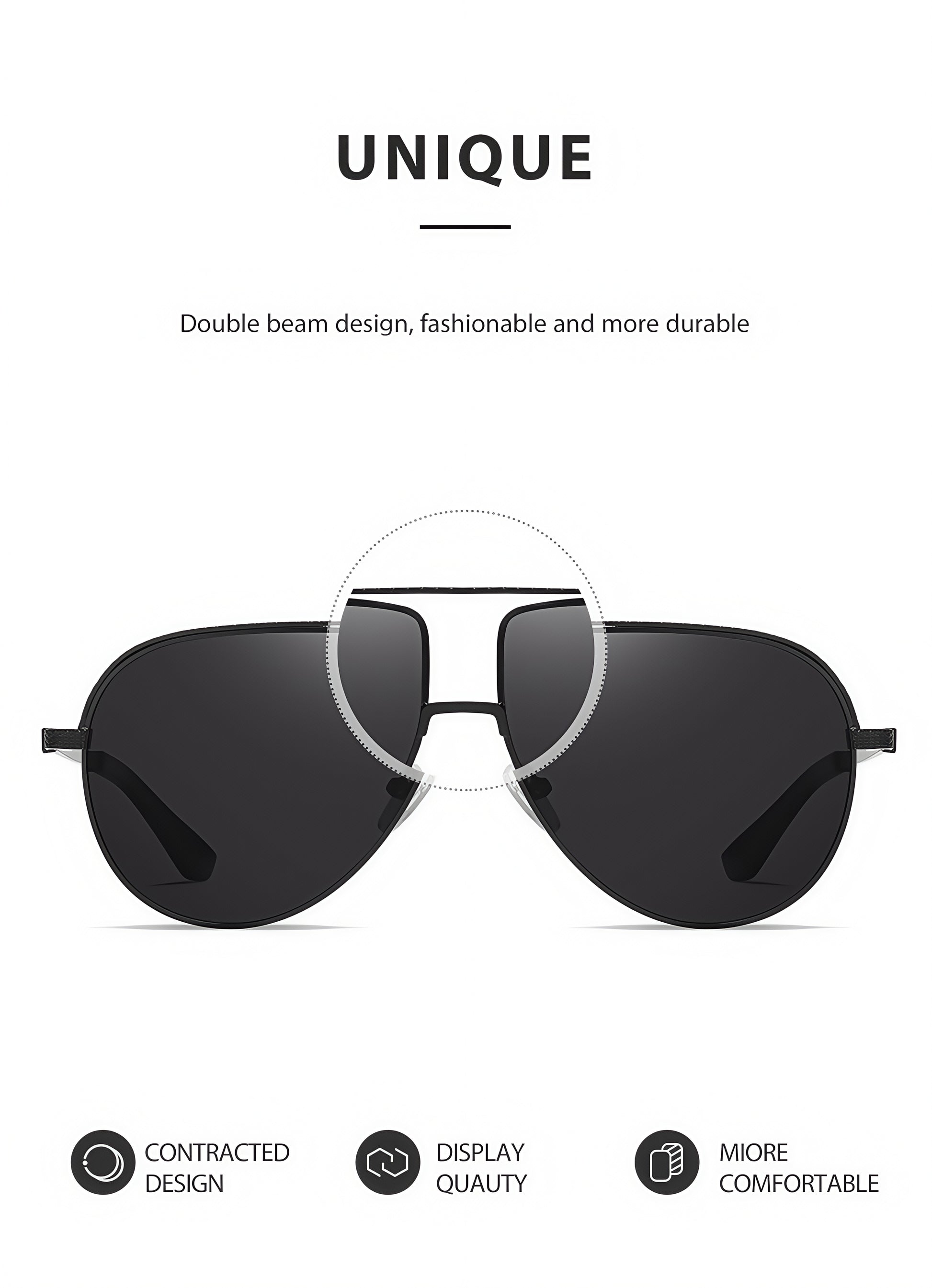Men Flexible Temples Polarized Aviator Double Beam Anti-Glare Driving Sunglasses