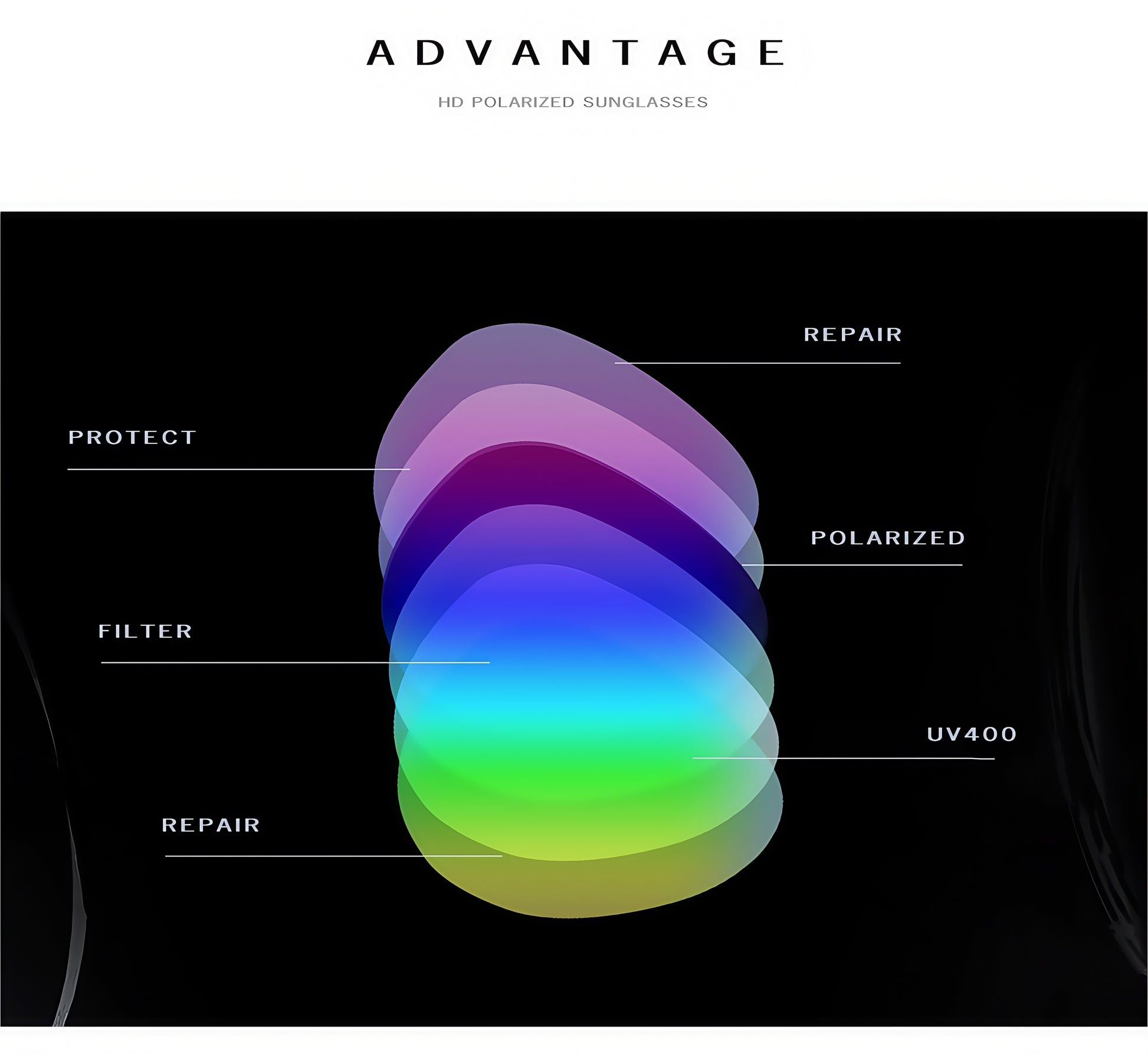 Equipped with high-definition polarized lenses that reduce glare and enhance clarity, perfect for driving, cycling, fishing, and other outdoor activities.